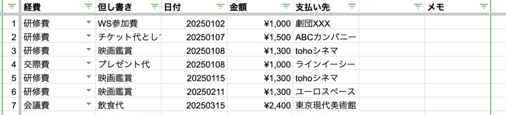 勘定科目_経費の詳細_日付(YYYYMMDD)_金額_支払い先
